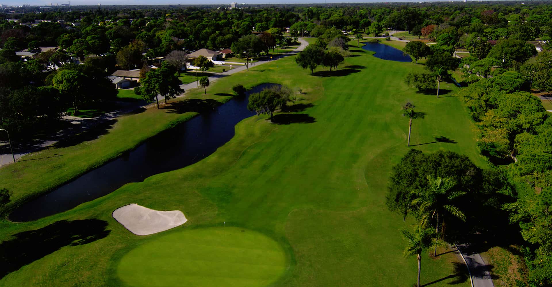 From the back markers, the tee shot is all carry over water. There is plenty of room for tee shots but favor the right side. Place your second shot on the correct level of the three-tier green to have a good putt at birdie.